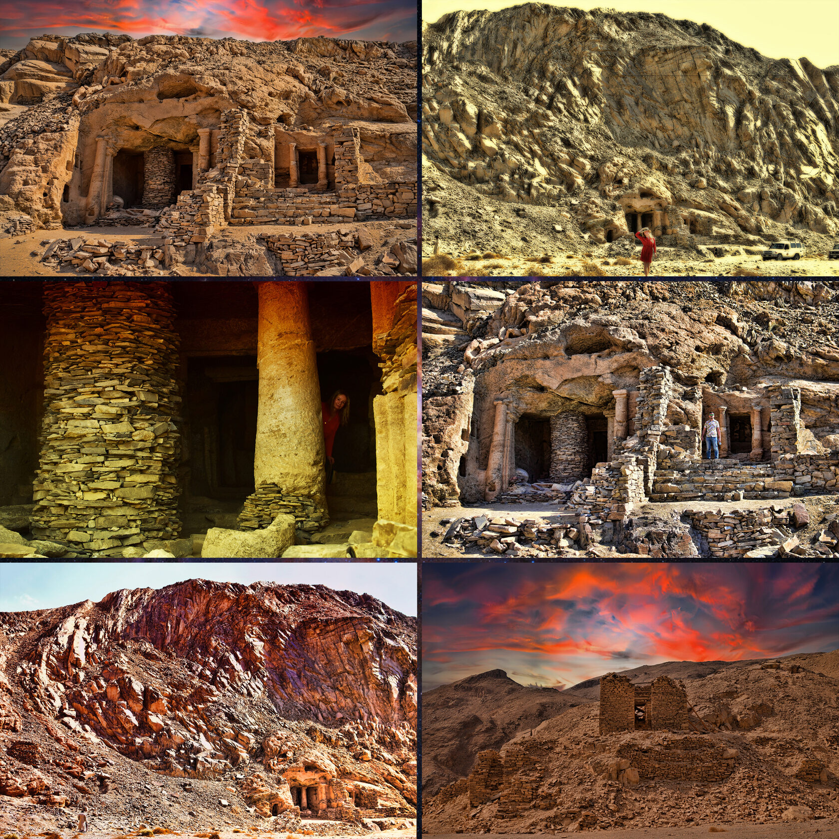 На закате, когда последние лучи солнца проливаются на истерзанные временем камни, перед взором предстают величественные руины. Здесь, среди осколков былой славы, сплелись воедино остатки великой Римской империи и загадочные следы Птолемеевского царства. Древняя легенда гласит, что сама богиня зари Аврора, плененная красотой этих земель на заре времен, обещала даровать им вечную память и особую благодать. Каждый рассвет, окрашивая небо в нежные оттенки розового и золотого, она касается своими лучами этих камней, чтобы они никогда не утратили своего былого величия в сердцах людей. И теперь, на закате, когда свет угасает, кажется, что эти руины, озаренные отголосками дневного сияния, шепчут истории о давно минувших эпохах. Навеки хранимые в объятиях Авроры, они гордо ждут своего часа.